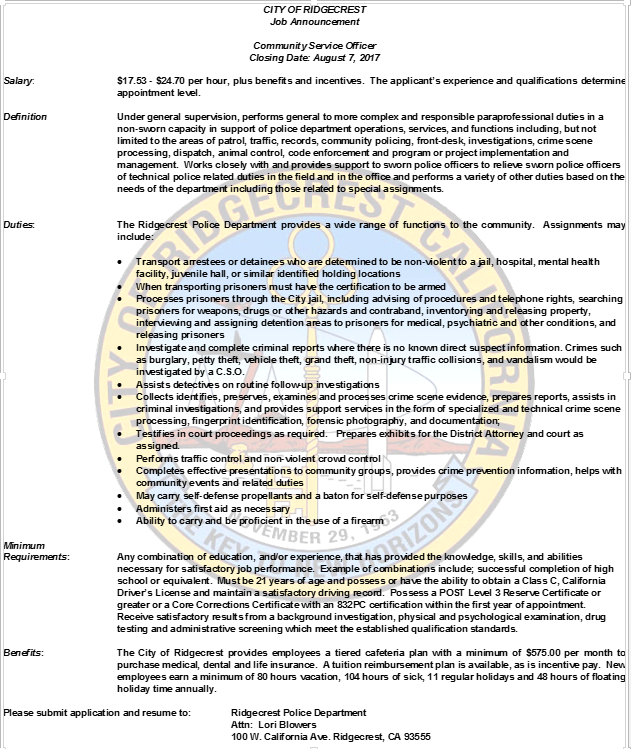Volunteer with the Ridgecrest Police Department